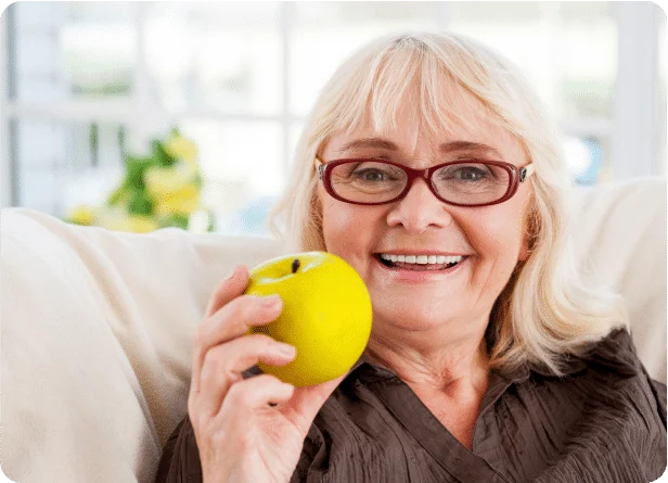 Ill-fitting dentures can slide around when you’re eating and make it more difficult to chew hearty foods. While conventional dentures only restore 20 percent of your original biting function, an implant-supported denture can renew 70 percent or more of your chewing force. You’ll be able to enjoy all your favorite foods as well as a healthy diet of crunchy vegetables and chewy meats.